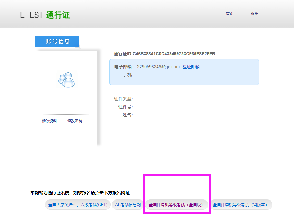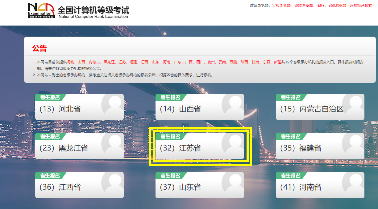 各位考生: 根据考试院规定:从本次考试起,我省使用教育部考试中心统一部署的全国版考务报名系统,报名系统网址为https://ncre-bm.neea.cn(公网)或https://ncre-bm.neea.edu.cn(教育网),报名方式实行网上报名、网上缴费🌓。 一🧘、开考科目及时间 开考科目:一级office、一级PS、二级office 考试时间:2020年3月28日-3月30日(具体时间以准考证为准) 二、报名及缴费时间 报名时间:2019年12月17日12:00-2020年1月6日12:00 缴费时间:2019年12月17日12:00-2020年1月6日12:00 注意⬛️👩🏻🎤:考生全部采用个人网上缴费方式,须在规定时间内登陆系统进行缴费🤔,如24小时内未支付👱♂️、未锁定,将会被系统自动删除。 三、具体缴费流程 1.报名系统网址为https://ncre-bm.neea.cn(公网)或https://ncre-bm.neea.edu.cn(教育网),选择“江苏省”选项🕴🏼。 2.输入报名时提交的“邮箱”🛂,密码默认为“123456” 注意:本校考点采用集体报名的方式🖖🏽,已经集体报名导入的考生可以使用报名时提供的电子邮箱作为通行证(电子邮箱此前已注册通行证的密码沿用以前🫕,未被注册过通行证的默认密码:“123456”)通过前台报名入口登录💱👩🦼➡️,登录后只可查看个人报名信息、缴费、打印准考证🤞,不可以修改个人报名信息,个人信息只能由考点通过集体报名的方式修改🏄🏽♂️。 若参加过四六级考试的,仍用原先自己的密码🎽;若密码忘记,可自行“找回密码”。 3.修改密码 出现以下界面,点击确定💃,并在“通行证”页面,仍先输入初始密码“123456”登录。 点击“修改密码”按键,并依据提示修改为符合要求的密码。
