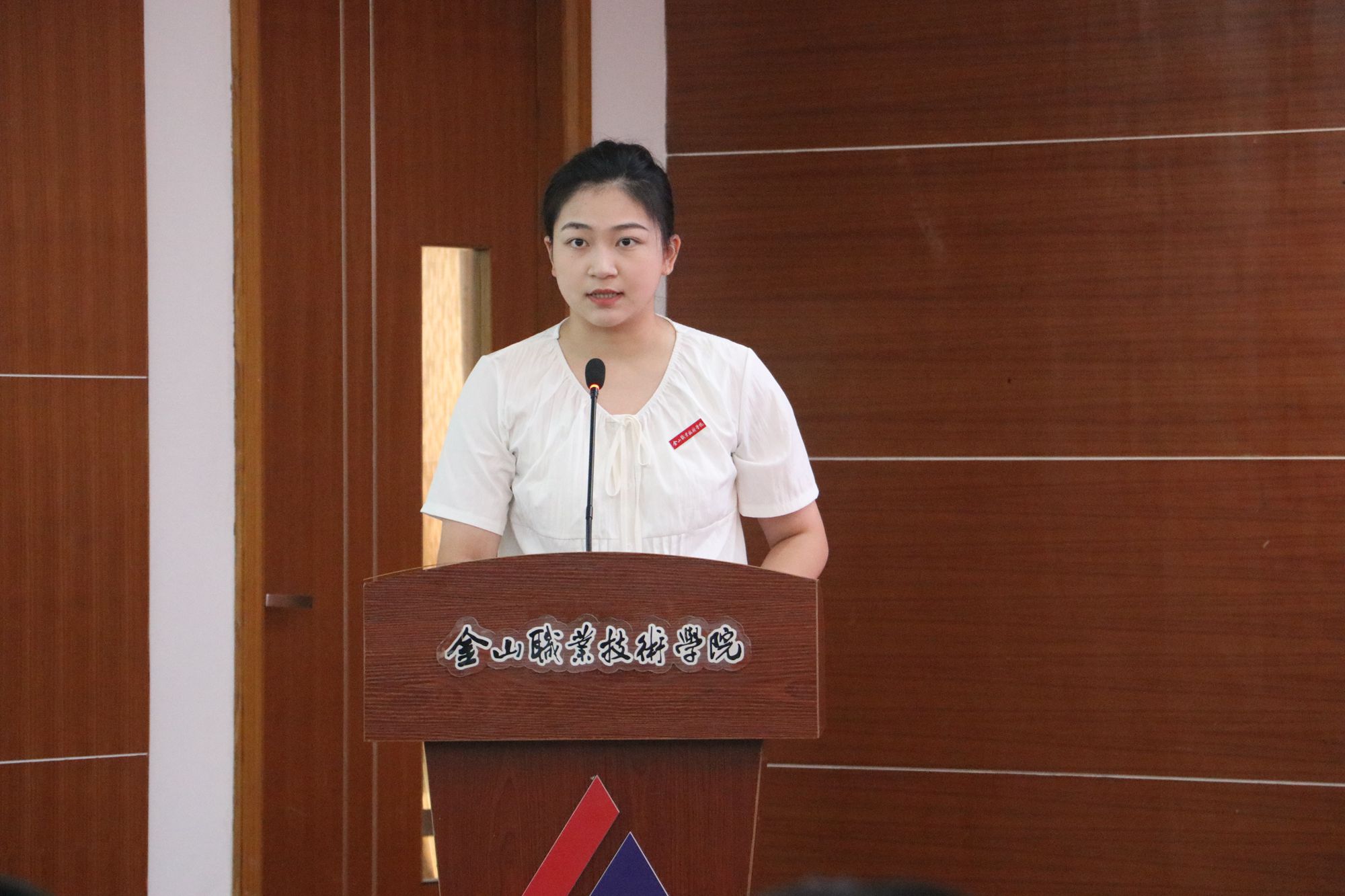 马克思主义学院教师王文雅代表新入职教职工作表态发言。