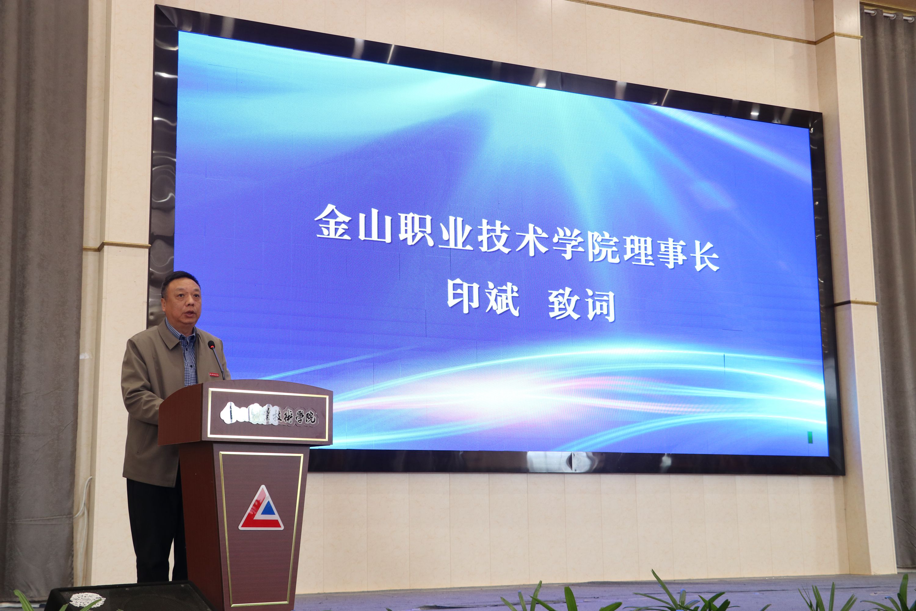 学院理事长印斌致词👩🏿🔬。他代表学院向一直以来关心支持学院发展的各位领导、各位来宾表示热烈欢迎!向支持本次活动的各位专家👯♂️、产业教授和企业领导表示崇高的敬意和衷心的感谢!