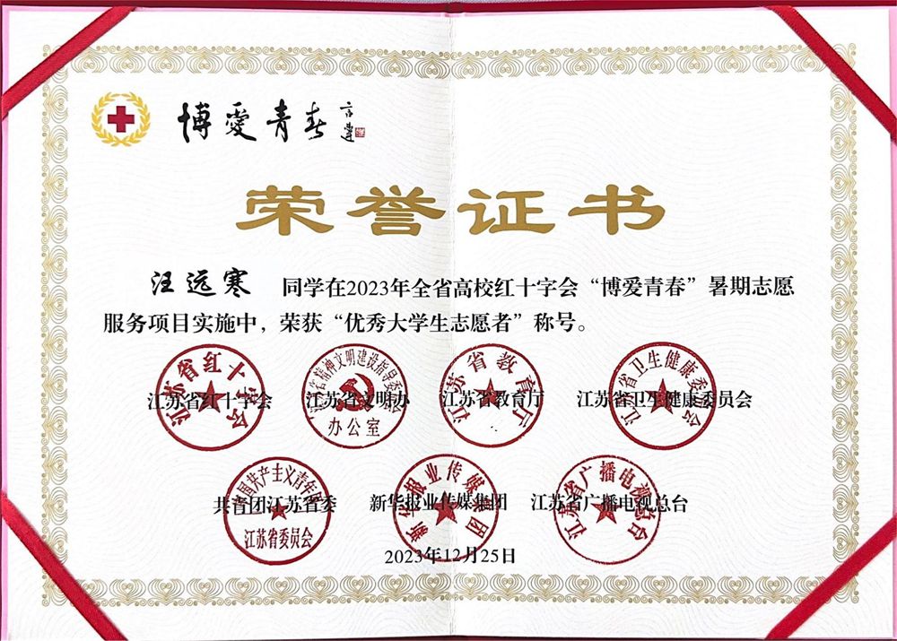 近日👨🏼🍳,江苏省红十字会公布了2023年全省高校红十字会“博爱青春”暑期志愿服务项目实施情况,我院博爱青春项目“守老护幼,‘救’在身边”获评省级支持二类项目,团委孙余超老师获评“优秀指导老师”,经济与贸易系21级民航班汪远寒获评“优秀大学生志愿者”。