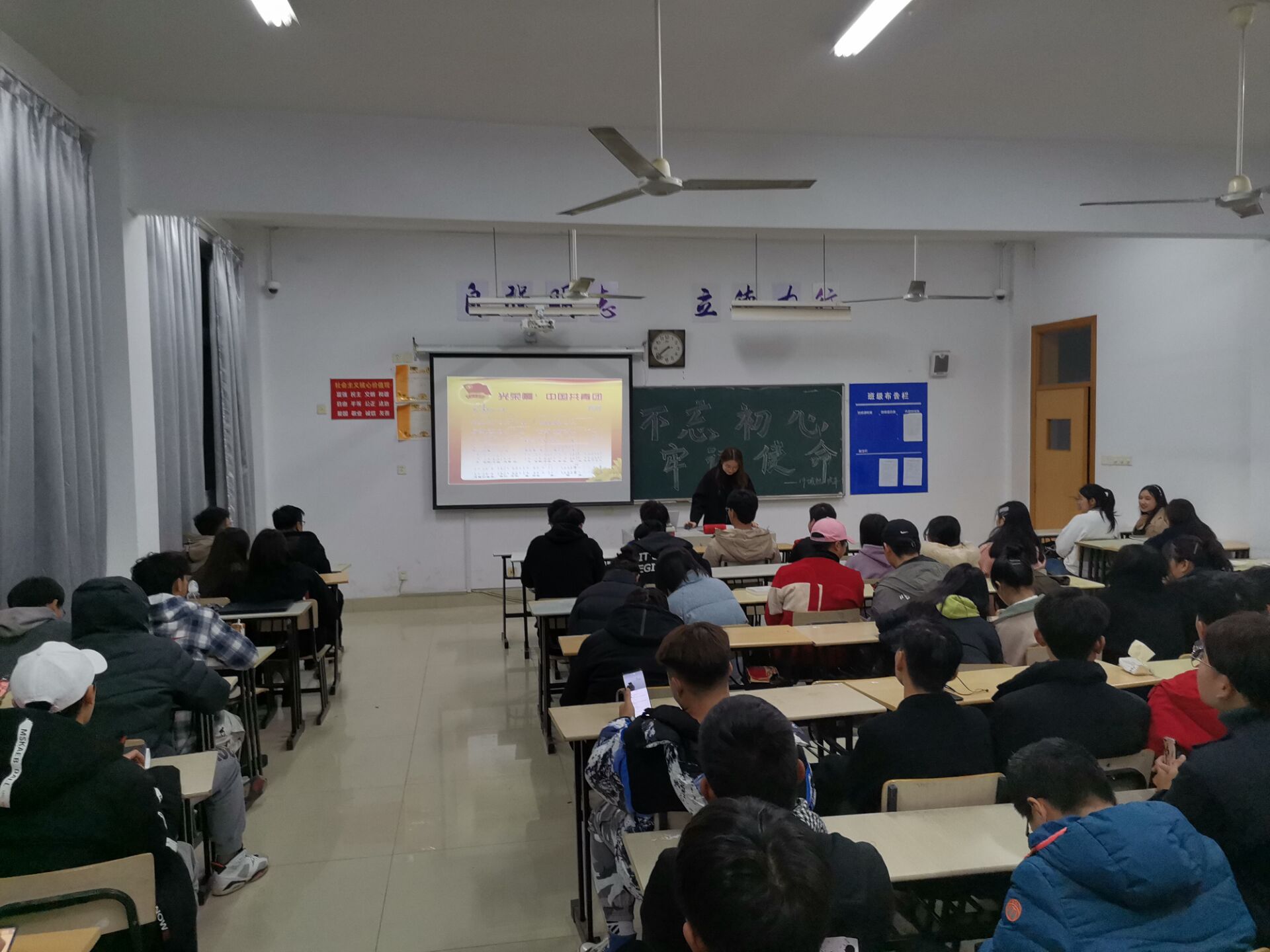 在班会上,同学们首先观看学习视频,通过“不忘初心,牢记使命”学习视频的展示🥬,带领同学们重温党史🎾,感受中国共产党的奋斗历程。然后,城轨班团支书徐艳带领同学们一起唱团歌,并且带领大家学习了不忘初心、牢记使命的5个目标🫵🏽。最后,班主任钱龙老师对主题教育班会进行了总结。