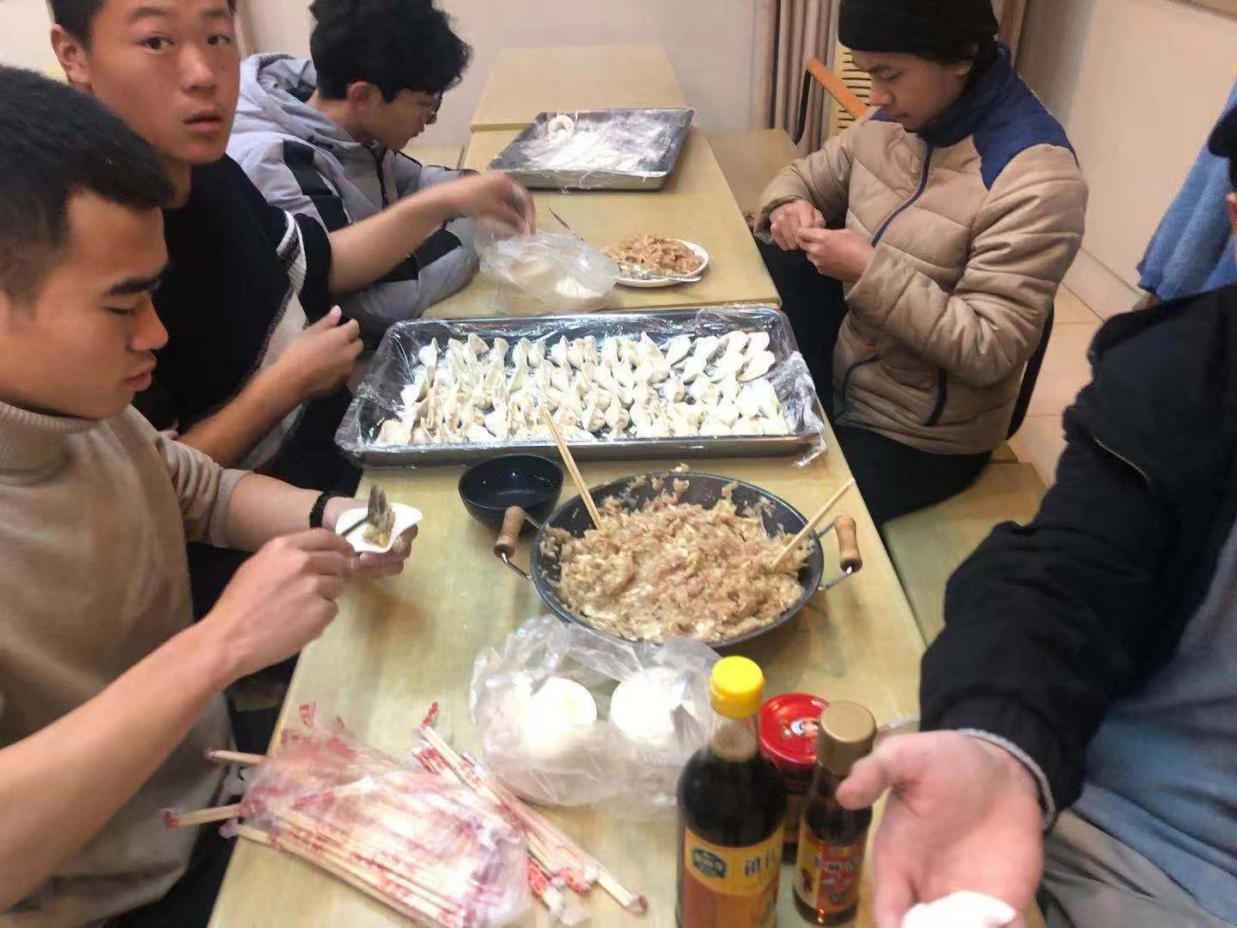 同学们围坐在一起🤹‍♂️,分工协作🙆🏽‍♀️,和面的和面,擀皮的擀皮,包饺子的包饺子🦏。大家围绕学习、生活、工作等话题不时交谈着,别出心裁地包着饺子,并设计成各种形状,班主任老师也和同学们一起动手,师生互动其乐融融。在大家的不懈努力下,一碗碗热气腾腾的饺子端上了餐桌。吃着自己包的香喷喷的饺子🏤,大家感受到了青春的快乐和集体的温暖🛃。