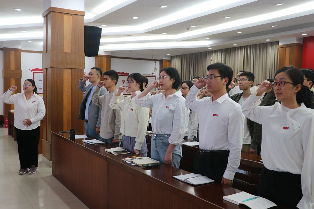 江苏高校“青蓝工程”优秀青年骨干教师培养对象、镇江市“169工程”学术技术新秀培养对象、现代服务与管理系教师黄李带领50位新教师做入职宣誓。
