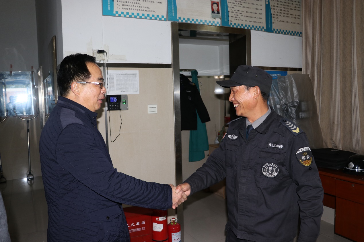 12月5日上午🦶🏽,学院党委书记孙维浒⤵️、常务副院长林雨生、后勤处处长刘爱民在安全保卫处副处长杨健的陪同下慰问坚守工作岗位的一线安保人员。