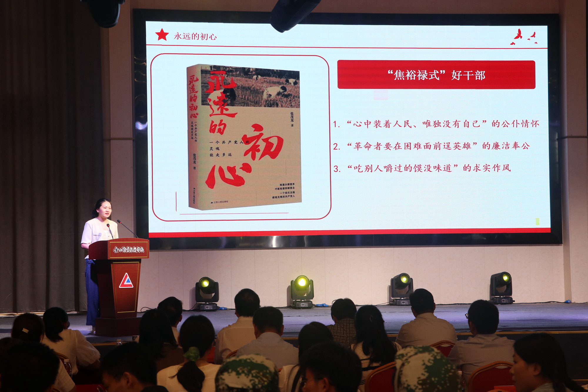 扬中市委党校蒋琳作《永远的初心》阅读分享,带领大家回顾了“焦裕禄式好干部”郭克生同志践行群众路线🂠、走进群众听民生、走到群众心里面的党员初心👷🏻🦹♀️;