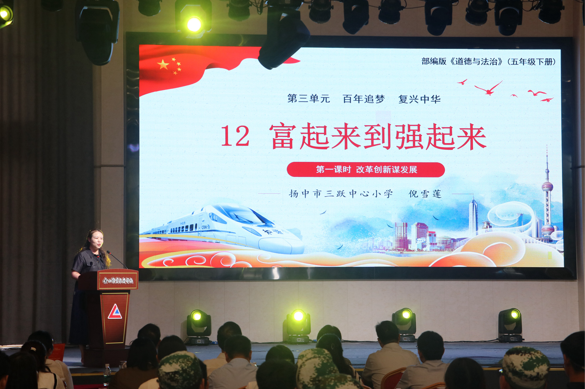 扬中市三跃中心小学倪雪莲以“富起来到强起来”为题通过详实的数据和生动的案例,讲述了中国人民如何在党的领导下💂🏻♂️,从解决温饱问题到实现全面小康,再到迈向社会主义现代化强国的伟大历程🛁;