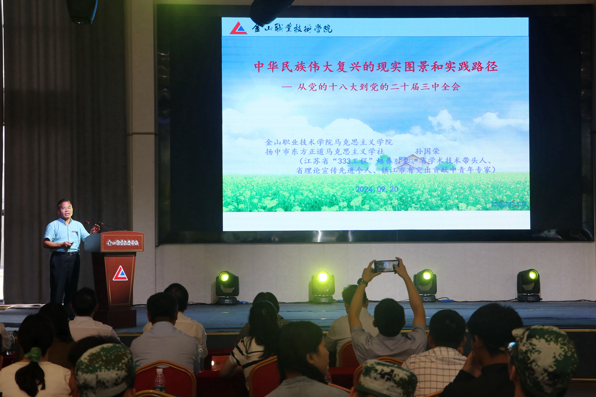 金山学院马克思主义学院孙国荣作“中华民族伟大复兴的现实图景和实践路径”学习贯彻党的二十届三中全会精神宣讲,他从历史、现实和未来三个维度出发,深入分析了中华民族伟大复兴的必然性,生动描绘中华民族伟大复兴的壮丽图景;