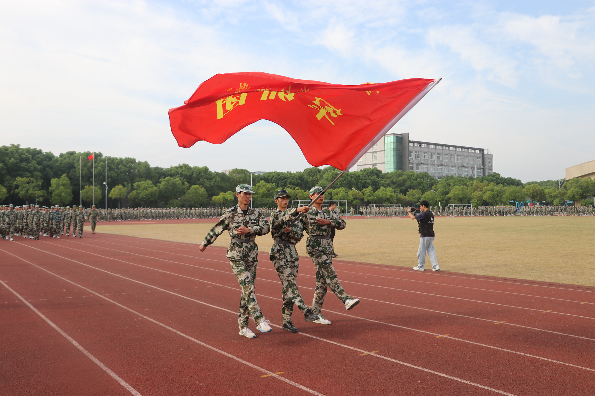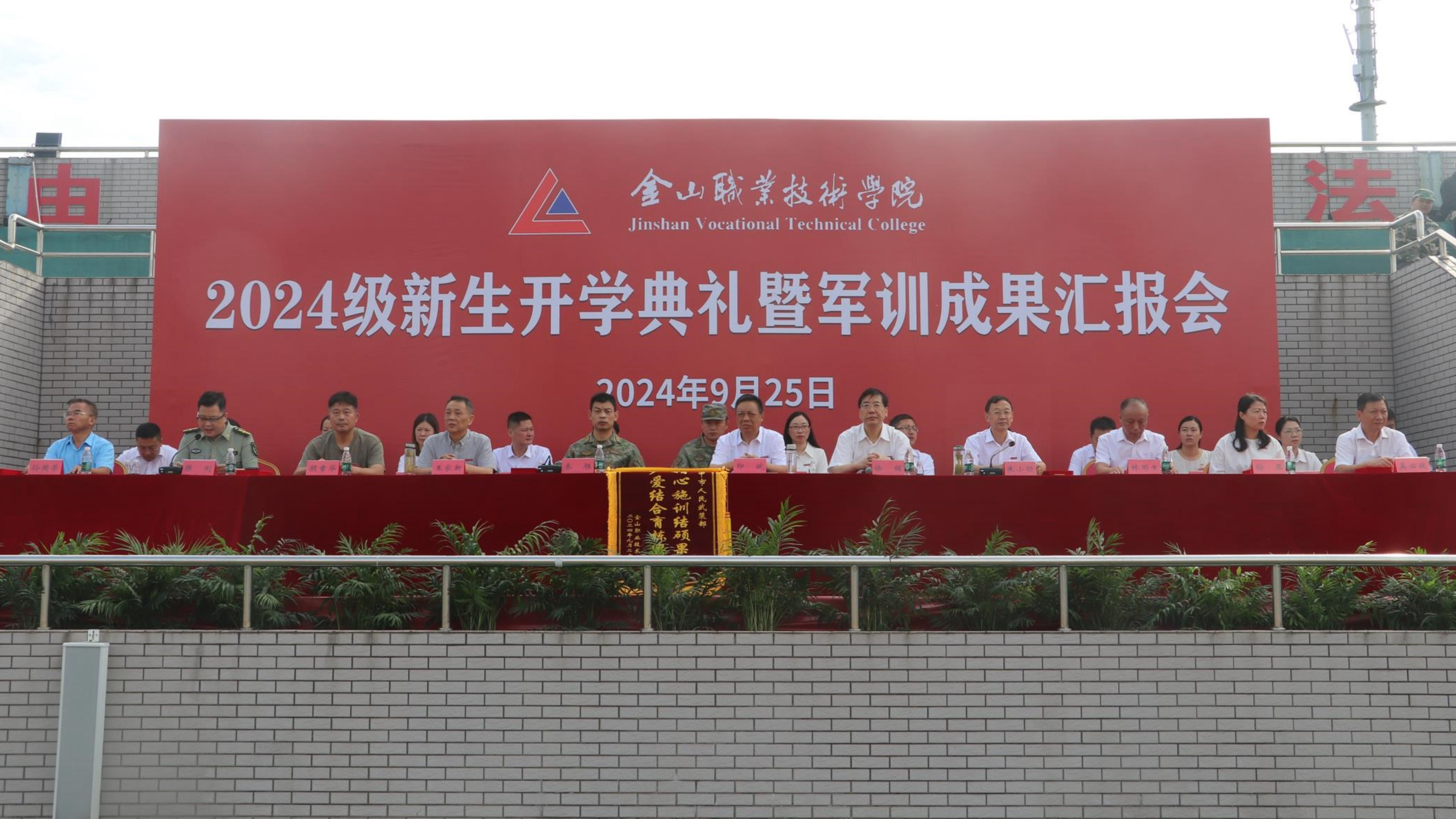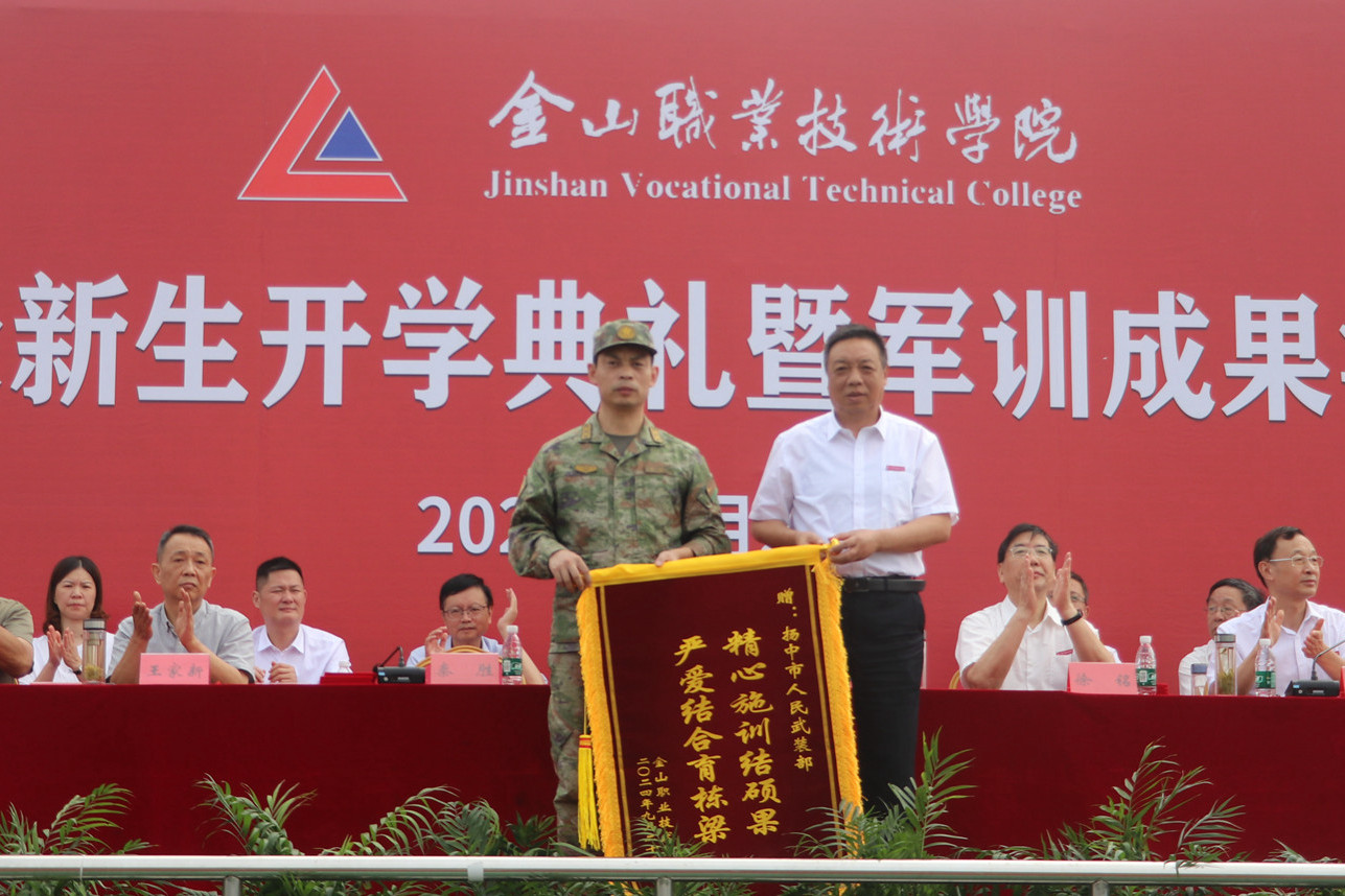 丹桂香飘八百里,金山沙场秋点兵。9月25日,我院在田径运动场举行2024级新生开学典礼暨军训成果汇报会。学院领导班子全体成员,各处(室)、系(部)院负责人,全体2024级新生及新生班主任和全体军训教官参加活动。扬中市人武部副部长秦胜出席活动🏃🏻。活动由学院副院长陈刚主持⛸。