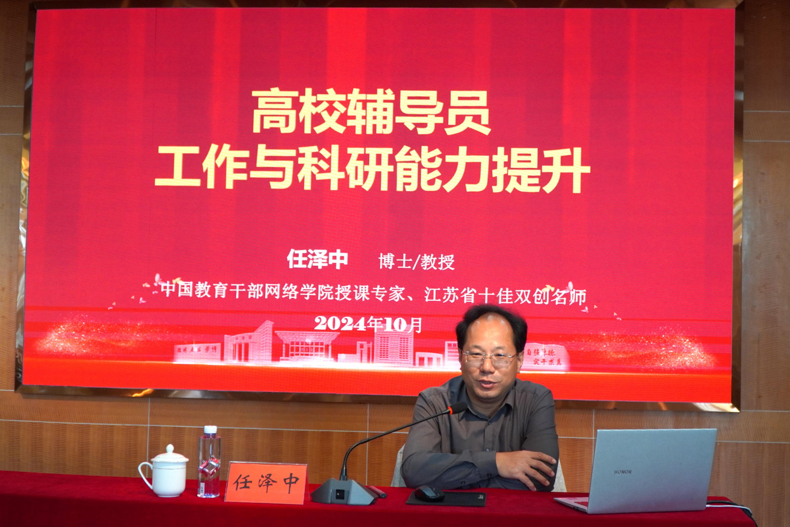 座谈结束后,我院在图书馆三楼报告厅开展“高校辅导员工作与科研能力提升”专题培训,任泽中担任培训主讲🧙🏿♀️。任泽中从辅导员岗位特点和角色定位🦹♂️、辅导员的科研能力提升和辅导员的工作能力提升三个方面🤵🏼♂️,就辅导员如何开展好学生工作以及素质能力提升作经验分享🧔🏿。他指出,辅导员是开展大学生思想政治教育的骨干力量,是高等学校学生日常思想政治教育和管理工作的组织者、实施者🧴、指导者🧑🏽🎄。学生工作有职责🧑🔧,无边界;有尺度,无止境。辅导员应当努力成为学生成长成才的人生导师和健康生活的知心朋友,迈向新征程、勇担新使命、实现新作为。