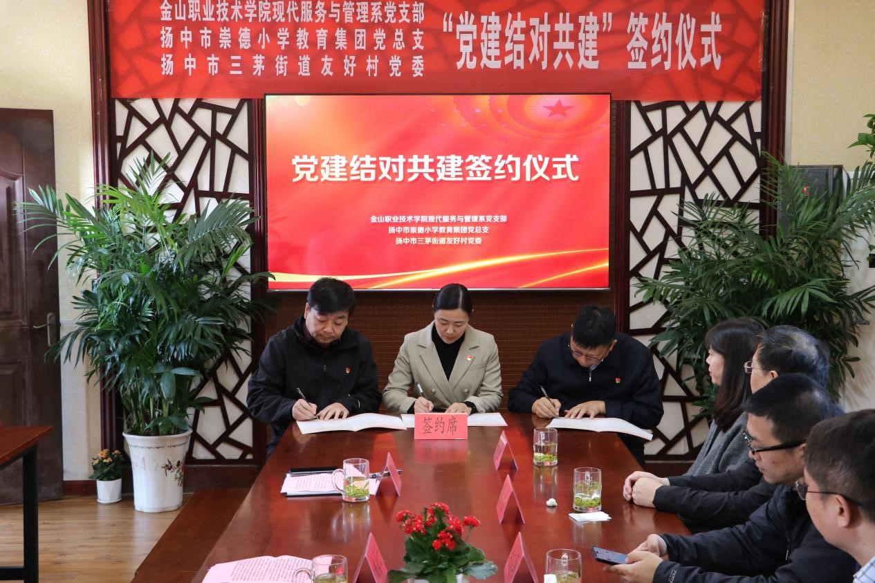 10月30日👆🏻,彩神现代服务与管理系党支部🙋、扬中市崇德小学教育集团党总支与扬中市三茅街道友好村党委共同开展了“党建结对共建”签约仪式,标志着三方在党建引领下深度合作的新篇章正式开启。