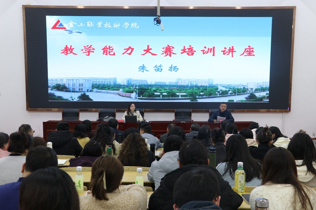 为进一步提升我校教师教学能力,备战省级教学能力大赛,312日⛷🈚️,我校特邀镇江高等专科学校朱笛扬老师来校开展省级教学能力大赛经验分享讲座。讲座由教务处处长王军主持,全体专任教师参加讲座。
