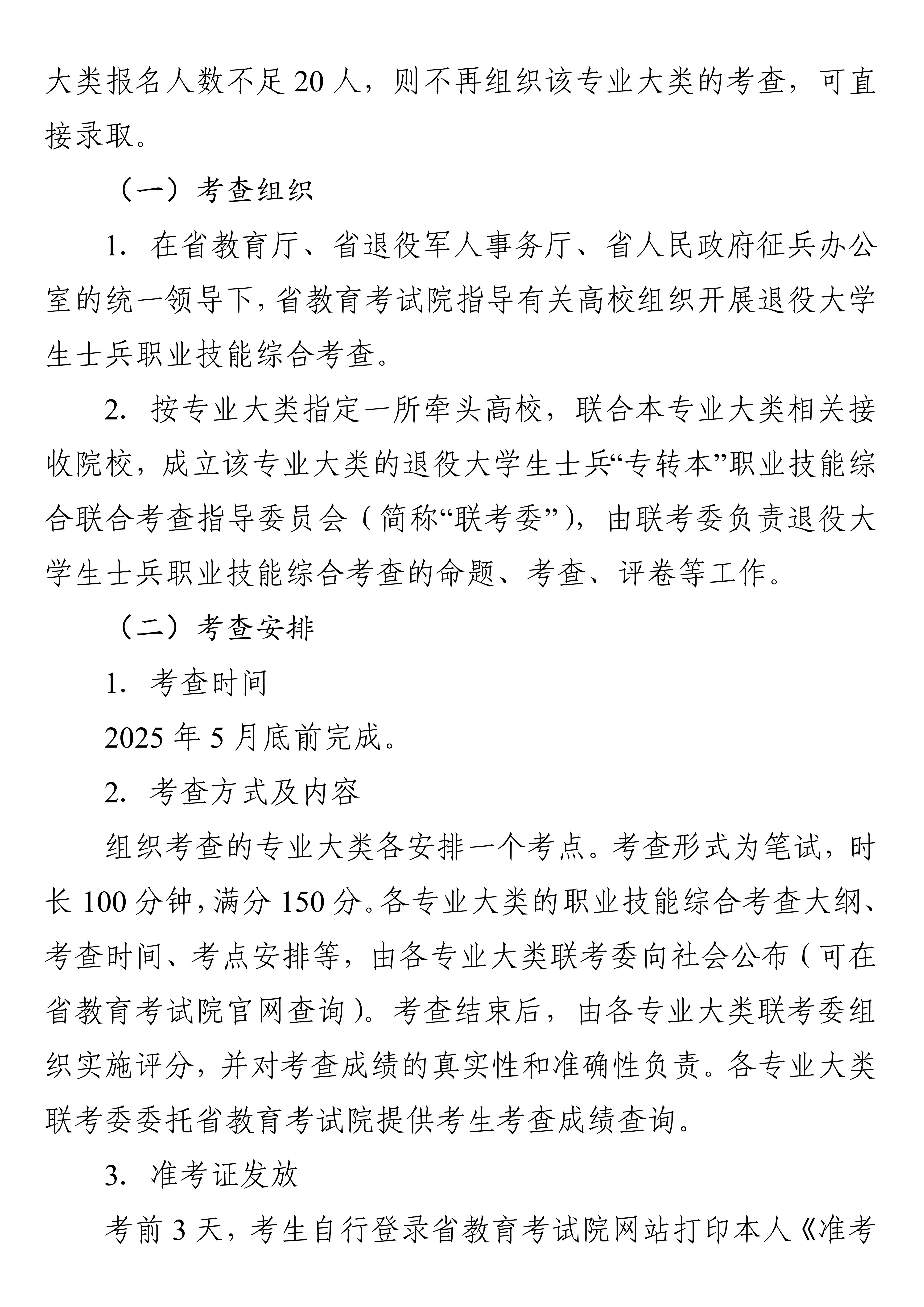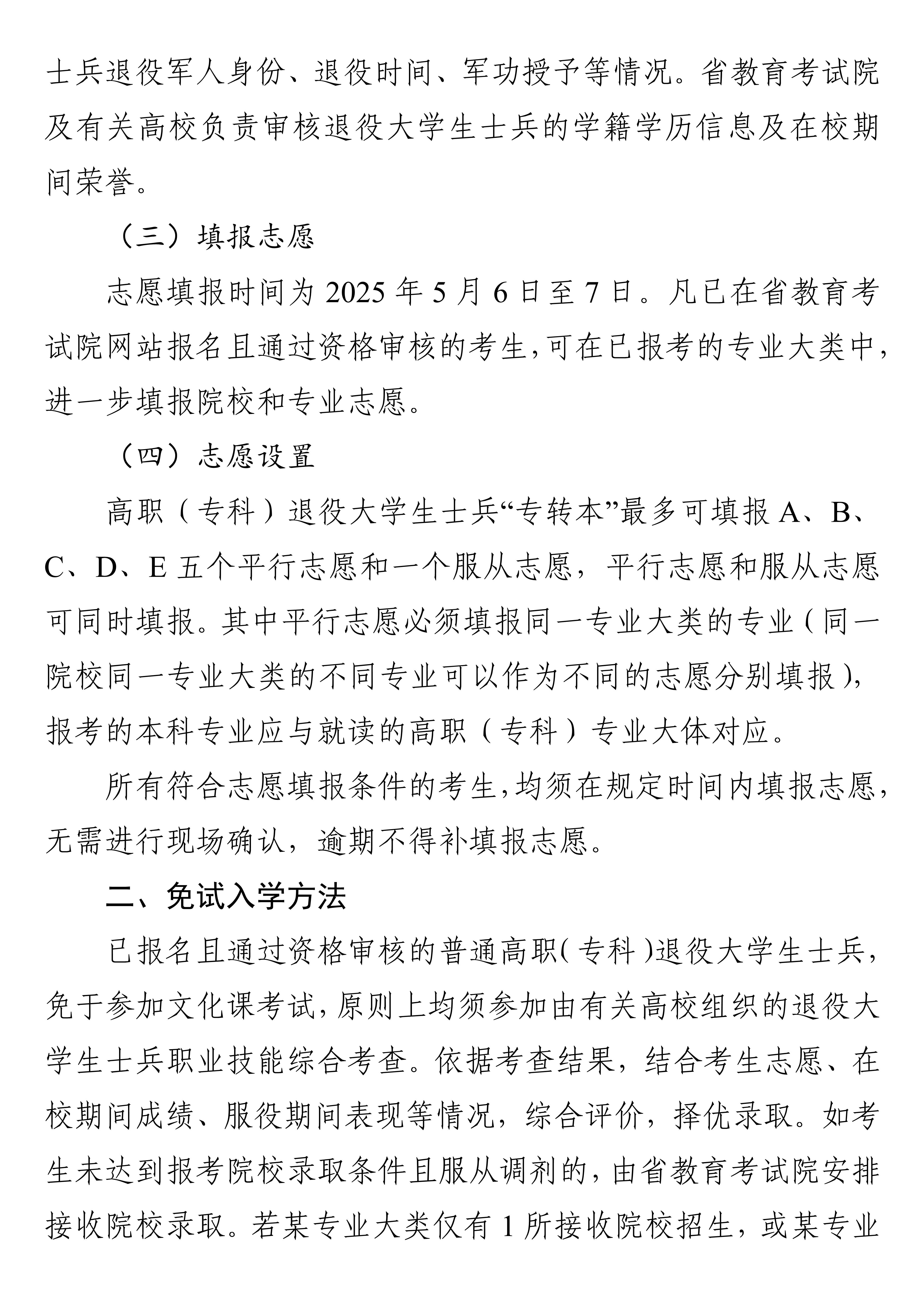 2025年江苏省三年制高职(专科)退役大学生士兵“专转本“招生工作方案