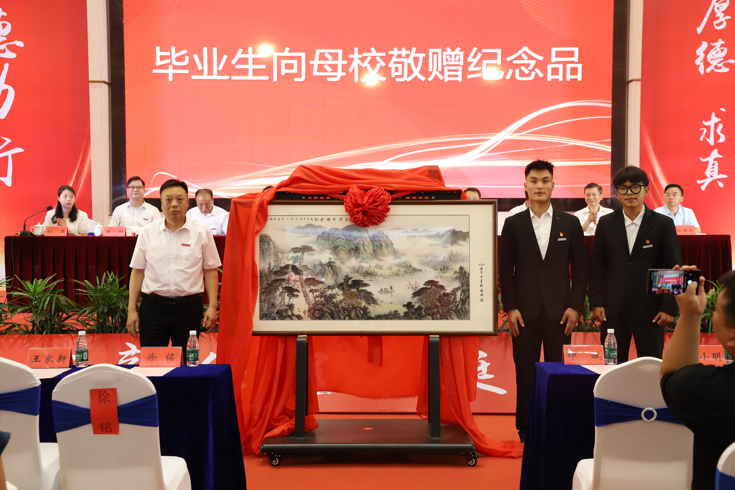 理事长印斌庄重地接过毕业生代表向母校敬赠的纪念品✍️。这份礼物,承载着毕业生们对金山学院最深沉的眷恋与最美好的祝愿。