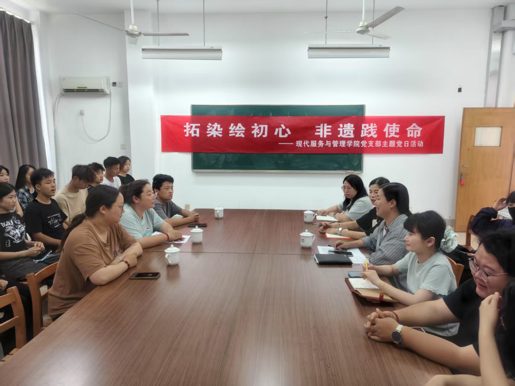 为创新党员教育形式,推动传统文化与党性教育深度融合,5月21日下午,现服学院党支部举办了“拓染绘初心,非遗践使命”的主题党日活动。现代服务与管理学院所有教师及入党积极分子以拓染为媒,感悟匠心精神,锤炼党性修养。
