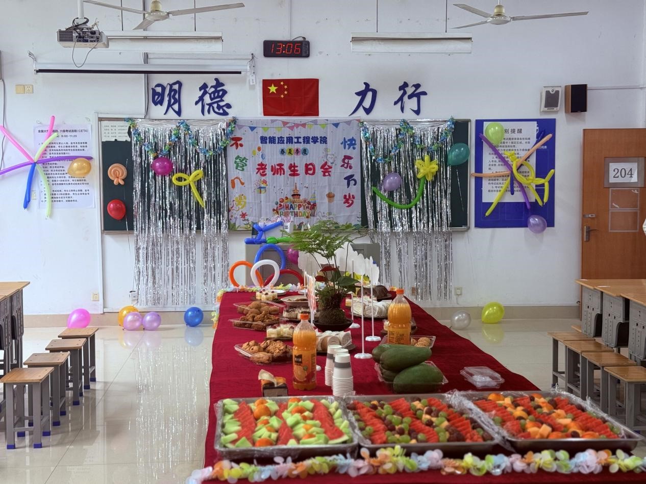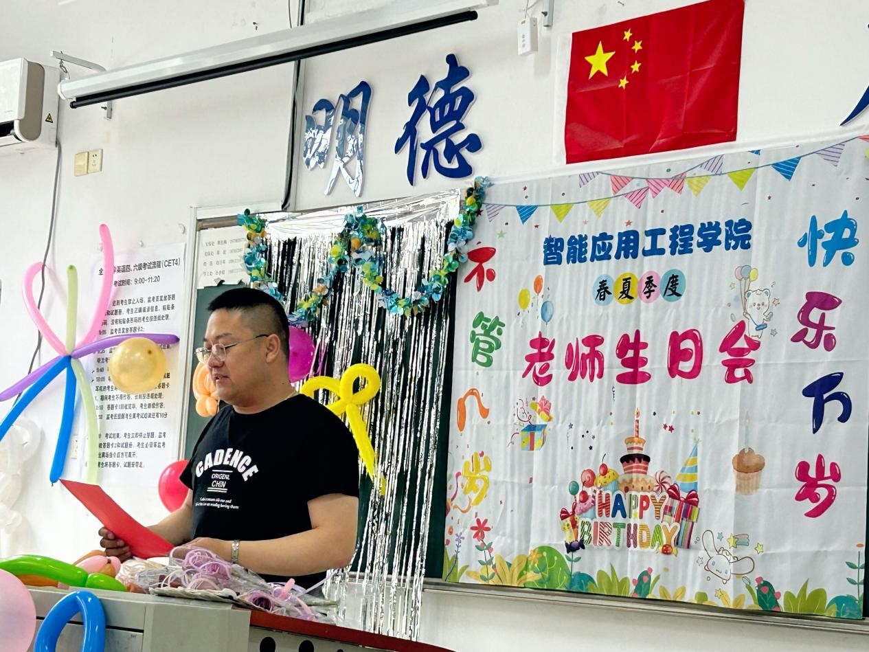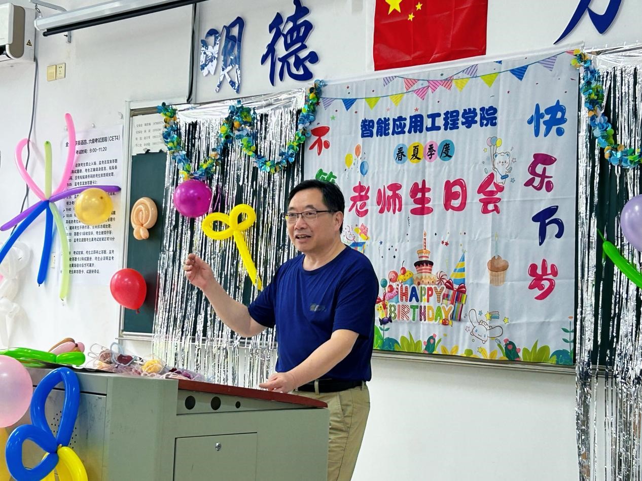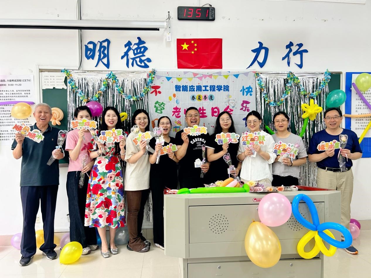为增强教师团队的凝聚力与归属感👩🦯,营造温馨和谐的工作氛围,2025年6月20日下午,智能应用工程学院在江海楼二楼成功举办了集体生日会,为上半年过生日的老师送上最诚挚的祝福。