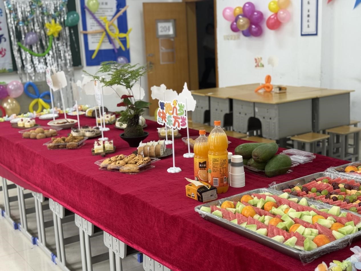 生日会现场布置得温馨雅致,五彩的气球、绚烂的彩带、美味的蛋糕、丰富的水果🤚🏼,处处洋溢着欢乐与温馨的气息。
