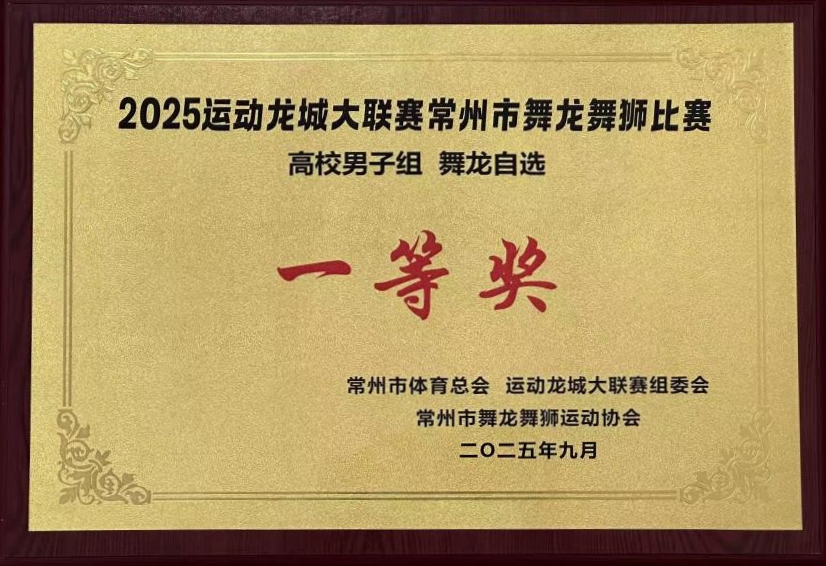 2025年9月20日至21日,在常州举办的2025年运动龙城大联赛中🤱🏽,我校舞龙社凭借精湛的技艺与出色的现场表现,荣获高校男子组舞龙自选项目一等奖🧑🏿🦲🧝🏼♀️。