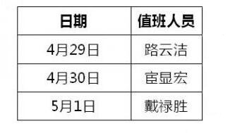 1.值班人员负责处理假期内学院日常事务。如学院及周边发生突发事件或出现安全隐患及时联系后勤保卫处刘爱民处理,同时向孙维浒书记汇报;如有紧急公文🙆🏻♂️💃🏻、会议通知及其他重要情况及时向孙维浒书记⛹🏻♂️、张琦院长汇报。