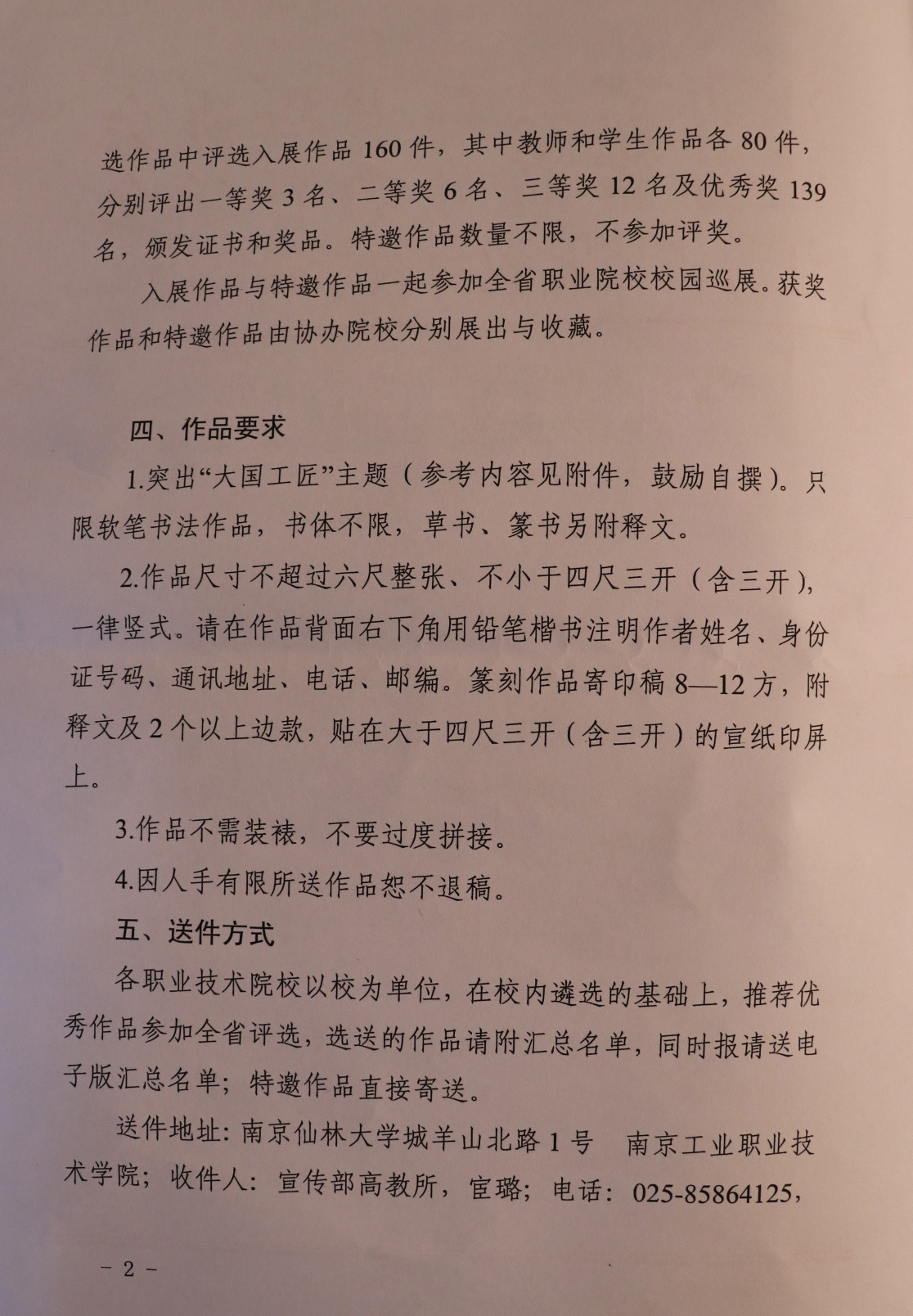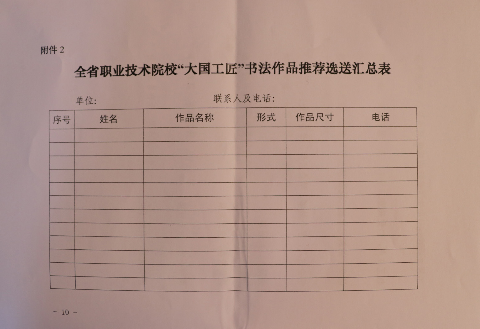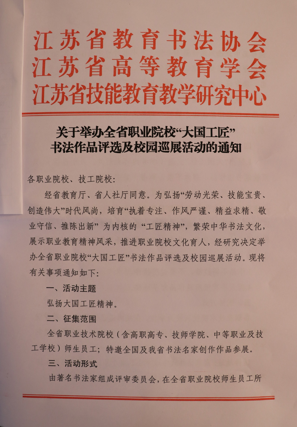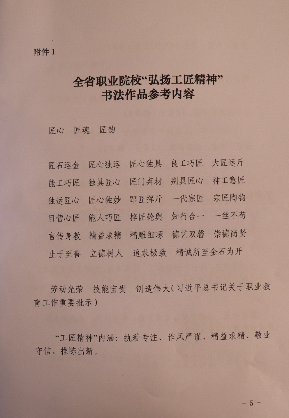 关于举办全省职业院校“大国工匠”书法作品评选及校园巡展活动的通知