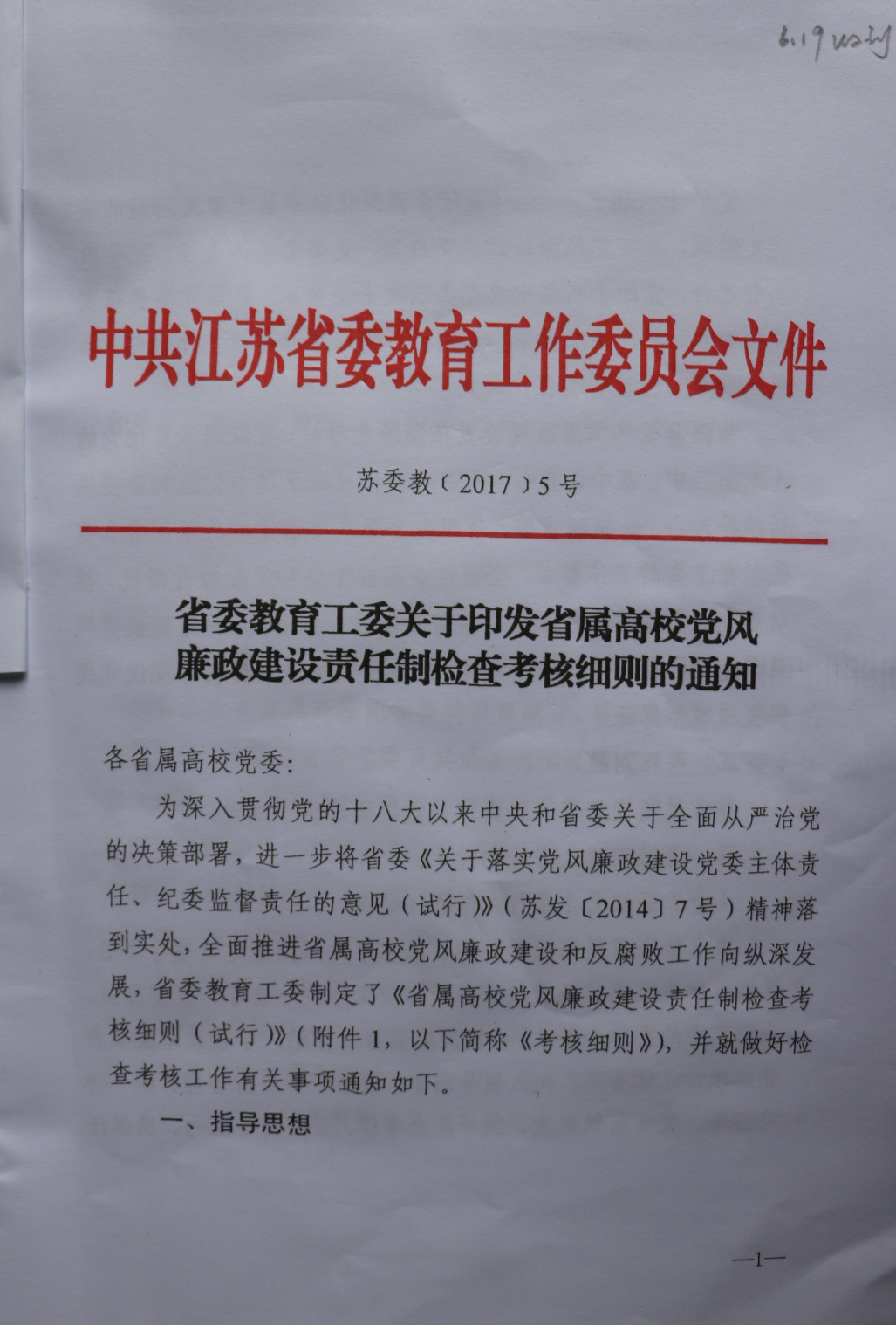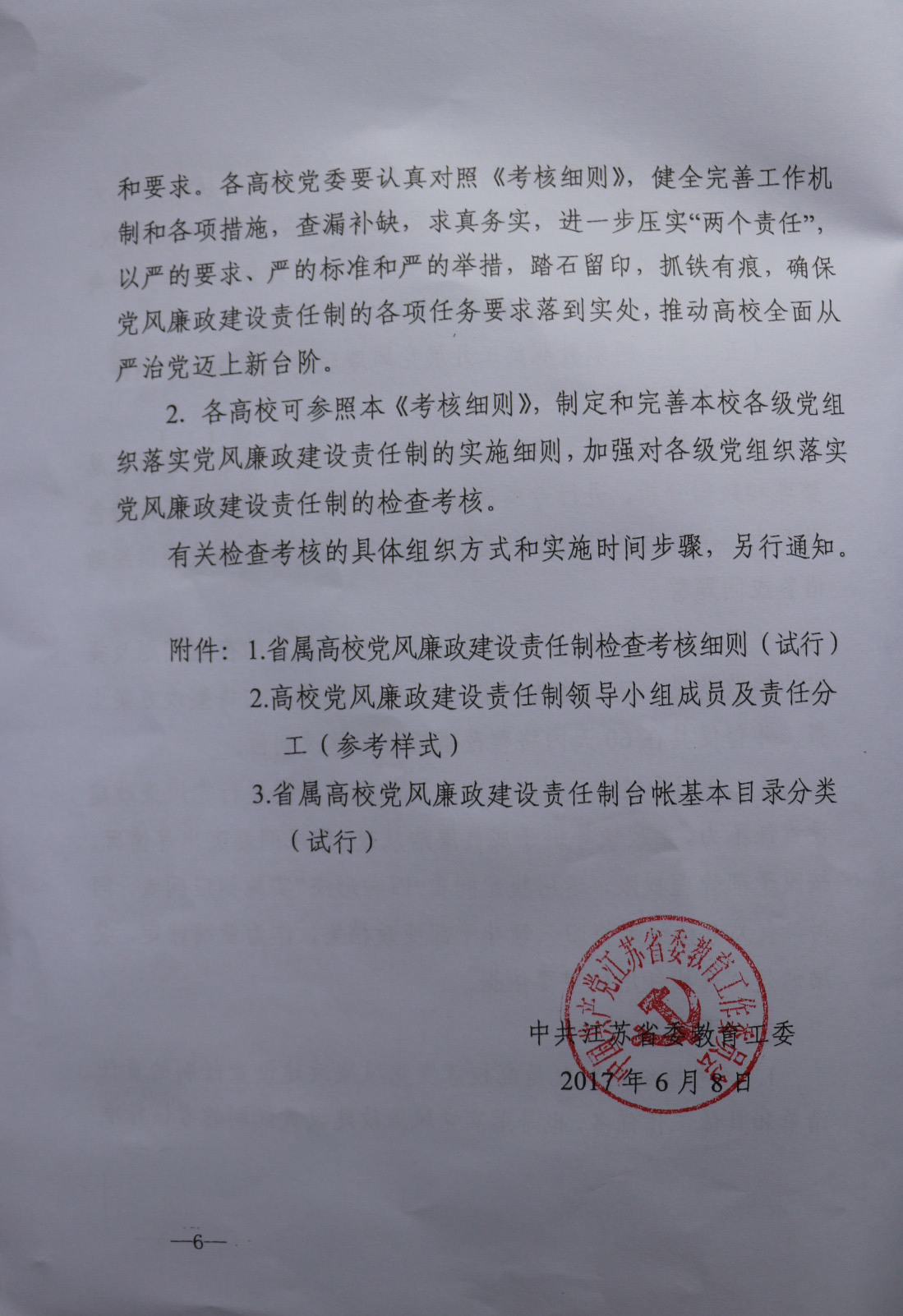 省委教育工委关于印发省属高校党风廉政建设责任制检查考核细则的通知