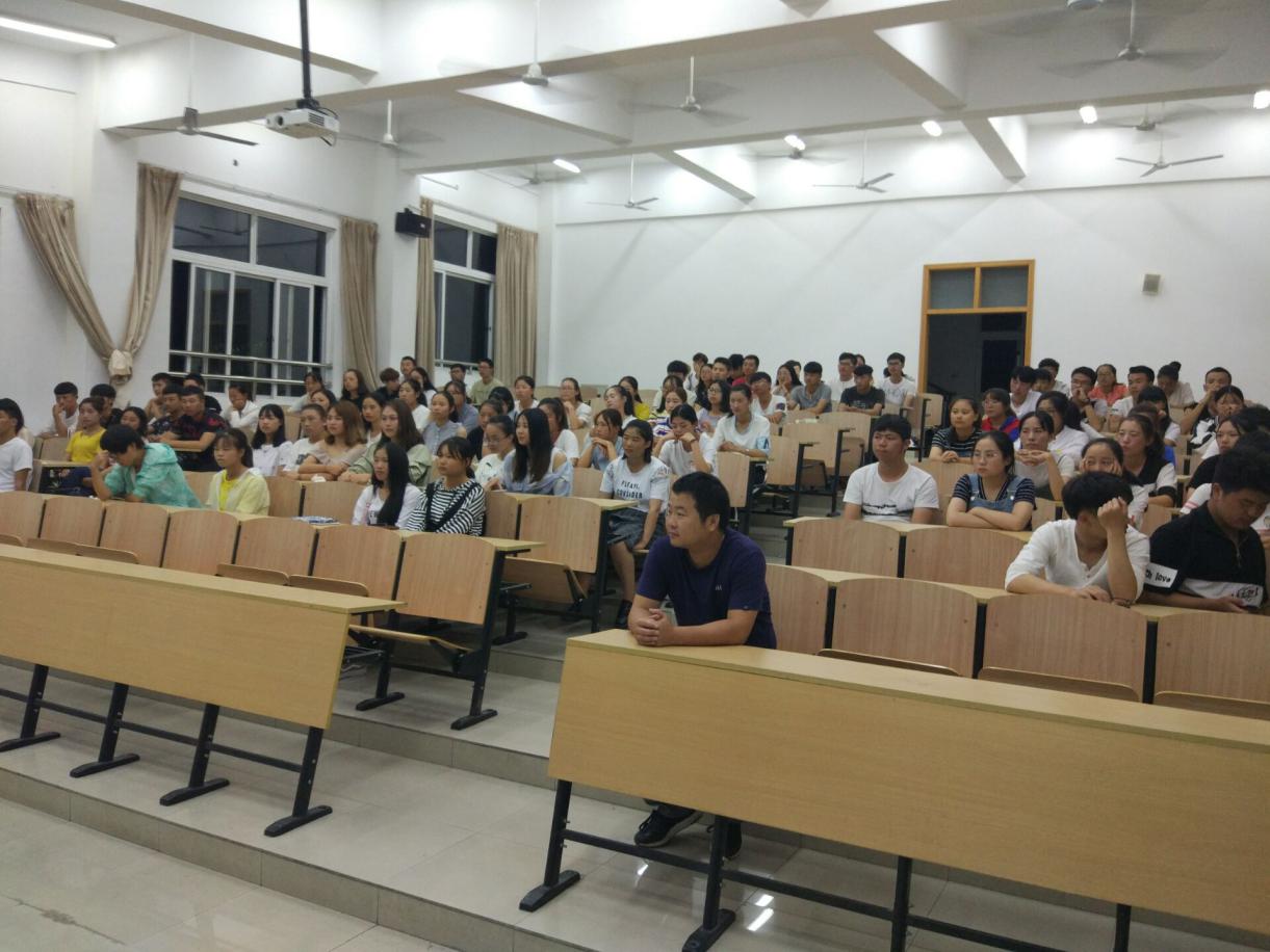 914日晚6:30,新成立的经济与贸易系在三号楼204教室举行首届学生会第一轮竞选活动。参加本次活动的评委有经贸系主任章飞老师、学工干事袁杰老师和17级新生班主任代表黄玉茹老师以及学院学生会副主席陈怡伟同学。参加此次竞选活动的还有百余位候选人以及部分2017级学生代表。