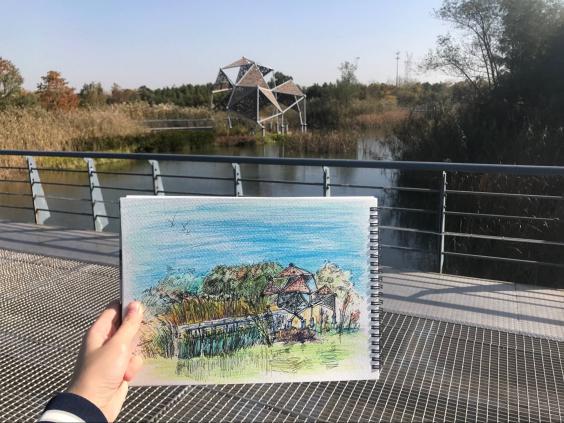 11月9日,建筑与艺术系王程、李贝子老师带领17级广告班、17级建装班学生赴滨江公园风景写生👬🏻。