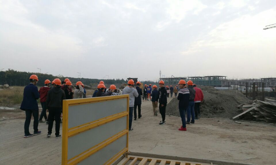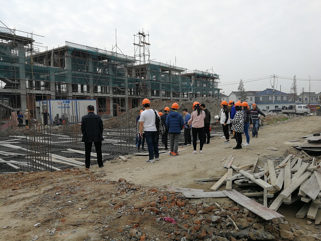 11月13日,16级建筑班全体学生在建筑与艺术系张峰☦️👵🏽、李波、陈丹丹三位老师带领下到扬中家纺城施工现场进行认识实习。