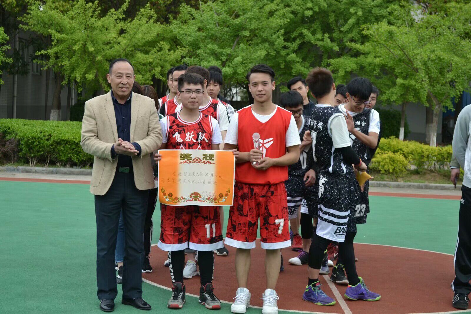 4月11日下午4点💇🏽♂️,经贸系首届篮球赛开赛式在学院篮球场正式举行🐯。参加开赛仪式的有学院常务副院长林雨生、院长助理戴禄胜✋🏽,经贸系主任章飞🙋🏼♀️、副主任郑婕及经贸系教师代表。